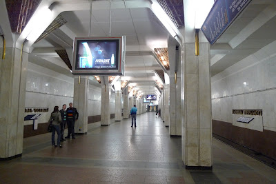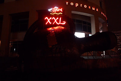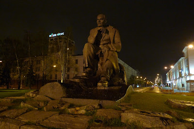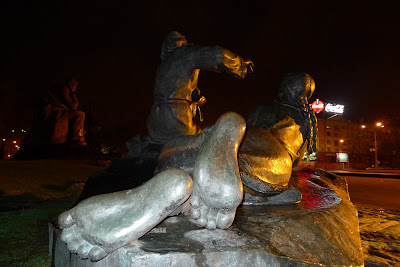 По дороге началась гроза с проливным дождем. Стемнело. Наш путь лежал в загадочный мини-отель "ЧУП Бондарук". Места были забронированы заранее. Попетляв по центру мы выехали к окраимне Минска. Городские дома сменились частным сектором. Отыскав нужный дом с номером 239 мы позвонили и на вопрос где поставить машину нарвались на... хамство. Время было уже немало и мы вышли в ночной город полюбоваться Минском и найти хороший ужин после долгого дня. Площадь Победы. Зал Славы под площадью победы. Станция метро "Площадь Победы". На станции висят плазменные экраны. Скульптуры на площади Якуба Коласа Не смотря на то, что гуляли часа 2 ни одного работающего магазина встречено не было. Как впрочем и ни одного кафе. Но в итоге нам все таки повезло. Мы обнаружили ресторан "Пинта XXL" где очень вкусно поужинали. Рекомендую как просто приятное заведение так и место, где можно перекусить в очень позднее время. "Хоровод горшочков". Ну где такое у нас???