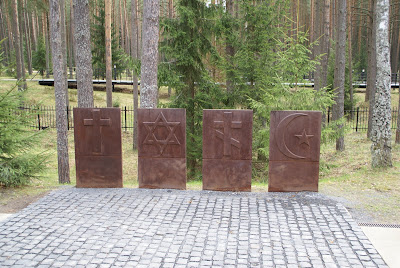 Следующим пунктом нашего путешествия был мемориал "Катынь". Мемориал "Катынь" расположен в 20км от центра Смоленска, между поселкам Гнездово и Катынь, в урочище "Козьи Горы", на месте трагических событий 30-40х годов XX века, жертвами которых стали граждане 2х стран - СССР и Польши. Открытие комплекса состоялось в 2000г. Организаторы и инвесторы - Министерство Культуры РФ и Совет по охране памяти, борьбы и мученичества Польши. Здесь покоятся несколько тысяч польских офицеров, расстрелянных органами НКВД в 1940г., более 500 советских военнопленных, уничтоженных фашистами и не установленное количество жертв политичесских репрессий - более 200 захоронений. При входе в мемориал есть павильон, выполненный в виде 2х могильных курганов. В нем расположен небольшой музей истории Катыни, где рассказывается о поляках и русских, жертвах репрессий и гитлеровцев. Слева от него есть еще один - музей Советского прошлого с предметами быта прошлого века под соответствующее звуковое оформление. Стенд посвященный погибшему президенту Польши. Мемориал разделен на 2 части - Российскую и Польскую. На Польской части нет ни одной надписи на русском. Сам мемориал сделан из стали, которая покрылась ржавчиной - такова задумка. На стенах выбиты тысячи фамилий. 4 таблички со знаками различных религиозных конфессий. Катынский колокол, помещенный ниже уровня земли, призван напоминать о тех кто здесь покоится. В Российской части в лесу проложены дорожки, так как не все захоронения еще досконально изучены, чтобы оберегать покой убиенных. Товарный вагон, подаренный Московской железной дорогой, в котором перевозили заключенных в 1920-50х годах. ДорогаПосле мемориала мы перекусили и двинулись в путь. У поселка "Санаторий Борок" дорога проходит вдоль живописного берега Днепра. Минское шоссе оказалось одним из лучших что я видел. Похоже на Новую Ригу, но там четырех полосная дорога заканчивается у Волоколамска а на Минке так и идет до границы, до Минска и дальше на запад. Километров за 30 до границы на каждом шагу стоят фургончики с автостраховщиками, пугая зазывалами в жилетах похожестью на ДПС. На таможенный пункт легковые машины пропускают так, у нас даже не спросили документы. Решив что мы уже в Белоруси решили что пора прикупить Белорусское ОСАГО. Однако в трейлере, приспособленном под пункт продажи сказали что это все еще территория России. Страховка обошлась в 480 рублей. (Подешевела, до этого была, вроде, 530). При этом выяснилось, что такая же страховка в Белоруси стоит уже 680. После вывески "Республика Беларусь" мы, наконец то, пересекли границу. Еще через пару километров показался въезд на платную дорогу - пункт дорожных сборов «Редьки». Цена вопроса - 19рублей ;). Чем эта дорога так хороша и где она заканчивается я так и не понял - ни указателей скорости ни контроля на выезде при повороте на Оршу я так и не увидел. Вдоль дороги идут бескрайние леса и поля. А так же попадаются прикольные названия и симпатичные памятники. Бензин в Беларуси дороже - 27000бел.руб - это 27р за 92й. Таки, Бобруйск!