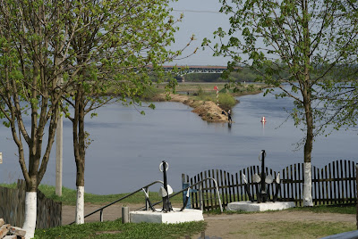 Памятник погибшим военнопленным. На этом заброшенном плацу могло состояться восстание декабристов. Согласно "Бобруйскому плану" государственного переворота авторами которого были офицеры расквартированных здесь полков Муравьев-Апостол и Бесстужев-Рюмин при посещении государем Александром I в 1923г. Бобруйска планировалось арестовать его и затем двигаться с войсками на Москву и Петербург. На этом месте был собор Александра Невского, построенный в 1827г. В 1934 году собор был взорван и здесь был стадион войсковой части. Сейчас здесь ведутся раскопки. На этом фундаменте решено восстановить храм. Водяные (Рогачевские) ворота Бобруйской крепости. Река Березина