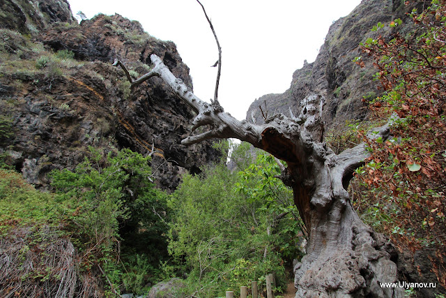 Виды открывались фантастические и захватывало дух. До конца тропы и водопада мы не дошли - путь в один конец продолжался уже часа два, вода кончилась а обратно возвращаться нужно тем же путем, поэтому мы развернулись и пошли назад. Передохнув и вдоволь напившись в одноименном ресторанчике у входа мы двинулись дальше - в рыбную деревушку La Caleta.