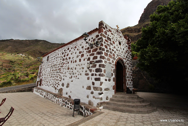 Доехать до самого окончания острова нам было не суждено. День клонился к закату, а заблудиться на этих узких горных серпантинах в ночь нас совсем не прельщало. Мы доехали до тупичка, оканчивающегося маленьким кладбищем. Дорога к побережью, по которой предлагал нам ехать навигатор, оказалась козьей тропой. Пришлось возвращаться назад и свернуть вниз по серпантину к городу San Andrés. Рядом сним, кстати, расположен огромный пляж Лас Тереситас, с ярко желтым песком из Сахары. Считается что он - самый красивый пляж Тенерифе. Но солнце уже заходило и нам было туда уже ни к чему.