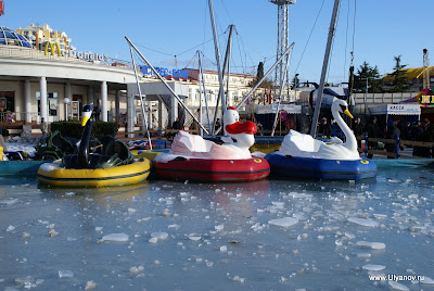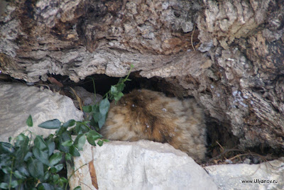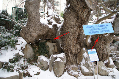 Пещера "Трехглазка". Так называется потому, что имеет три провала - глазницы. Она оборудована входом и спуском по ступенькам в огромный карстовый зал. Пещера интересна тем, что температура в ней круглый год, как в холодильнике, — не более +10 С, а на самом дне даже летом возвышается большой конусообразный сугроб из оледеневшего снега. Об этой пещере люди знали давно. Древние охотники здесь хранили свою добычу, на веревках через центральный "глаз" опуская её в подземные ледяные закрома. При необходимости поднимали, сколько нужно, провизии и снова опускали. А граф Воронцов использовал пещерный лед для охлаждения вин, напитков и продуктов. Его пилили и, сложив куски в огромные бадьи, укутанные, чтобы удержать холод, доставляли на волах по крутым извилистым дорогам вниз. Попасть в нее мне не удается уже много раз подряд - она закрыта на замок. Не удалось и в этот раз. (Хотя при очень большом желании можно было бы перелезть через забор). Пирамида и корабль пустыни На плато у станции канатки разместился целый татарский городок где можно поесть горячей шурпы, шашлыков, крымских чебуреков и продегустировать крымских вин. На последнюю отправку кабины вниз лучше не опаздывать, залюбовавшись обалденными видами с Ай-Петри на закате... Никитский ботанический садВ этот день, как на заказ, пошел густой пушистый снег. Ведь я так хотел увидеть пальмы в снегу! Все как в моем любимом фильме АссА! Мальчик, вынимающий занозу Птички Фисташковый кот ;) Соблазн для алкашей (в одном из заведений) Вы можете отправить отзыв, вопрос или комментарий воспользовавшись этой формой |