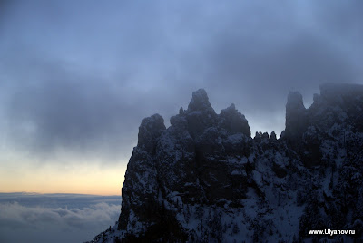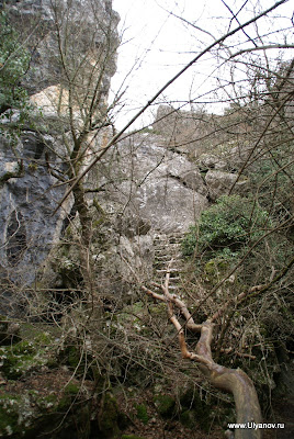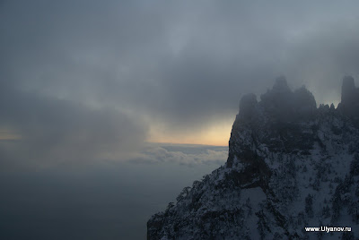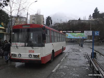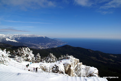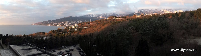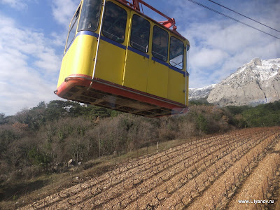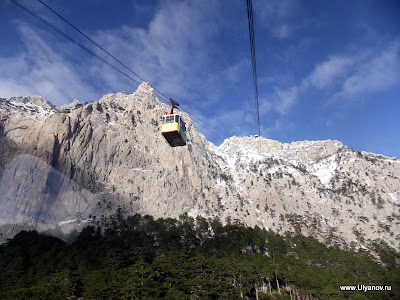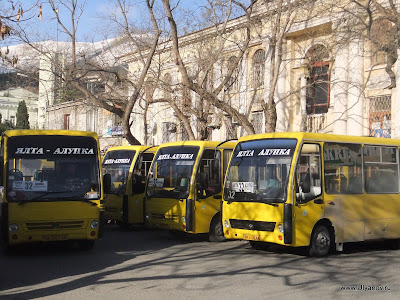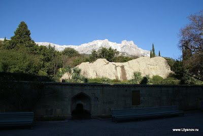 Ай-ПетриМожно доехать на автобусе 32 от рынка или 27 от автовокзала - оба идут до Алупкинского парка. Остановка так и называется - "Канатная дорога". Билет на автобус - 7 гривен. Билет на канатку в 1 конец - 50 гривен. На плато есть 3 оборудованные пещеры: Трехглазка, Ялтинская и Геофизическая. Трехглазка была известна уже очень давно. Еще во времена графа Воронцова слуги добывали в этой пещере лед для охлаждения шампанского при дворце. Обложив его соломой везли по дороге во дворец. А все по том что пещера является природным холодильником - даже в самую сильную жару в ней лежит большой слой снега. Пещера Ялтинская была открыта совершенно случаянно в 1997 году, когда сын ялтинского альпиниста собирая грибы на ай-петринском плато обнаружил под листвой и камнями небольшое отверстие, за которым открылся огромный сталактитовый зал с высотой купола до 18 метров. Пещера Геофизическая была оборудована в 2009 году. Из входной шахты вглубь пещеры ведет уникальная винтовая лестница. Её длина 28 метров, что является абсолютным рекордом в европе и вторым в мире. После спуска по винтовой лестнице нужно спуститься еще немного по ступеням. После этого начинается 150 метровый тоннель. Изначально спелеологи могли лишь проползти по нему и лишь когда пещеру оборудовали для туристов тоннель очистили от слоя глины. В пещере проведен свет. Если приглядеться (ну или повернуть колесо объектива) то в маленькой точке можно узнать наш "маленький" отельчик. Пещера Геофизическая Восточный базар. Здесь можно прикупить чаи, продигустировать и купить понравишееся вино и, конечно, завершить прогулку в одном из татарских ресторанчиков, отведав нежных шашлыков, плова, крымских чебуреков и покурив кальян. Последняя кабинка вниз уходит в 17-30. Ну до этого лучше не дотягивать - последняя маршрутка в Ялту уходит примерно в это же время. АлупкаДо Алупки можно доехать как с автовокзала так и из центра - маршрутки уходят каждые 10-20 минут. Причем попасть можно с двух разных сторон - одни маршрутки идут до парка а другие проходят по шоссе в сторону Симеиза и выйдя попадаешь в верхнюю часть городка. Я обычно выхожу на остановке "Пожарка" - спустившись с неё вниз попадаешь в самый центр. На этот раз мы решили поступить наоборот - пройти через парк, посетить Воронцовский дворец, побродить по старым запутанным улочкам и уехать верхней дорогой. Зимой маршрутки заканчивают ходить рано, часов в 5, и с шоссе уехать гораздо больше шансов. В прошлый раз уехать из города мы почти отчаялись - маршруток уже не было, мы в итоге еле нашли такси. Номера автобусных маршрутов, которые следует в Алупку и через нее: №36, идет из центра Ялты через Алупку в Аквапарк, Кацивели; №26, идет из Ялты до Семеиза, Кореиз в Алупку; №32,27 – конечной остановкой является Алупка (Воронцовский дворец); №42, идет по от Ялты по трассе до Симеиза, проходя через верхнюю Алупку.