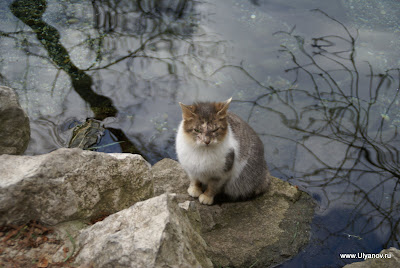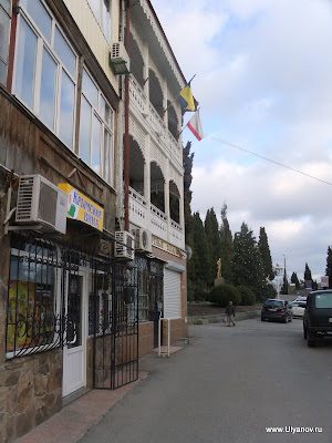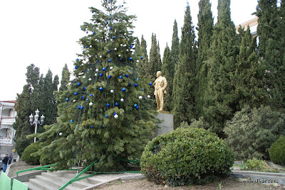 Котэ. Еще котэ. Напротив каменного "Хаоса" магазинчик "Чаи Крыма", ассортимент - соответствующий названию. Заодно можно прикупить аджику из горных трав, бальзамы и масла. Есть крымская травка Стевия, которая слаще сахара и может использоваться вместо него и при этом не содержит колорий. Вход в парк. Памятник Амет-хан Султану - знаменитому летчику, дважды Герою Советского Союза, который родился в Алупке. В Чебуречную "Арго" где когда то можно было отведать очень вкусные чебуреки я снова так и не попал. Вид у неё подзаброшенный. То ли её закрыли совсем, то ли открывают только в сезон. Владимир Ильич нынче не в почете - прямо перед ним поставили большую красивую ёлку. Ресторан "Алупка" на ремонте. То ли потому, что сгорел, то ли сгорел, потому что на ремонте. На улочках Алупки. Сайт Казимира Лабковича Алупка Алупка: отдых в Крыму