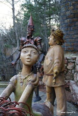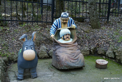 ЛивадияЛивадийский дворец расположен всего в 3 км от Ялты, доехать до него можно как от автовокзала, так и из центра. Еще в 1974 году в парадных залах был открыт историко-мемориальный комплекс, посвященный Крымской конференции 1945 года. А в 1994 году в бывших личных комнатах царской семьи на втором этаже дворца была размещена экспозиция "Романовы в Ливадии", рассказывающая о пребывании в Ливадийском имении трех поколений российских императоров. Поляна сказокЗдесь обязательно должен побывать каждый ребенок. Ведь под открытым небом разместились сотни персонажей самых любимых сказок. И все они именно такие, какими мы знаем их по старым мультфильмам, книжкам и картинам художников. Рядом с "Поляной Сказок" расположился зоопарк. Сказочных персонажей на фото думаю каждый узнает сам ;) Интересна история о "Мисхорской Русалке". В Мисхоре, в море, на скале близ пляжа стоит скульптура русалки. Появление её связано с красивой легендой о красавице Арзы и разбойнике Али-бабе. Я знал, что эта русалка - копия, а предыдущая была уничтожена. Каково же было мое удивление, когда знакомую по Мисхору русалку на скале я впервые встретил в лесу среди сказочных персонажей "Поляны сказок"! А история такая. Первая скульптура была выкована из бронзы скульптором А. Адамсоном. Скульптура русалки с младенцем через два года, в 1909 году, была смыта в шторм волной и навсегда утеряна. Но был еще жив сам автор, его мастеровые помощники, сохранился макет, поэтому вскоре была изготовлена и установлена на той же самой скале русалка-двойняшка. Она пережила Гражданскую и Великую Отечественную войны, но, вся израненная, не могла бесконечно сопротивляться морской стихии. В 1980 году штормовая волна также смыла ее со скалы. Вскоре русалку-двойняшку отыскали и достали со дна моря. Тогда еще памятники из цветных металлов ради наживы на металлолом не сдавали. Решили в таком виде многострадальную русалку, ради сохранности, разместить среди родственных ей сказочных персонажей на «Поляне сказок». Когда и кем русалка с младенцем были так зверски расстреляны, теперь уже не расскажет никто, живых свидетелей не осталось. Ветераны - участники Великой Отечественной войны— подсказывают, что, судя по обилию пробоин, их калибру, расположению со всех сторон скульптуры, похоже, что таким образом фашистские асы отрабатывали свою меткость в стрельбе по людям, избрав русалку удобной мишенью. В Мисхоре активные военные действия не велись. Теперь боевая, вся израненная русалка—немой свидетель жестокости прошедшей войны - мирно отдыхает среди деревьев в окружении милых и забавных сказочных героев и симпатичных страшилок. Источник - газета "Слава Севастополя" Тайна мисхорской русалки Королевство кривых зеркалГурзуфДо Гурзуфа идет автобус 31 от автовокзала. Есть остановка Гурзуф на трассе, но она высоко над городом, а автобус завозит прямо в город. Если идти в центр, можно выйти чуть раньше, а можно и да конечной - все рядом. Городок очень симпотичный. Сколько раз бывал в крыму - а здесь в первый раз. Из достопримечательностей - дача Чехова, музей... и большой парк при военном санатории. Попасть туда просто так не удастся - вход охраняется и разрешен только постояльцам санатория и местным жителям. Летом там водят экскурсии. Ну а так - или договариваться с охраной или искать дырку ;) Котэ. Проголодавшись нашли н